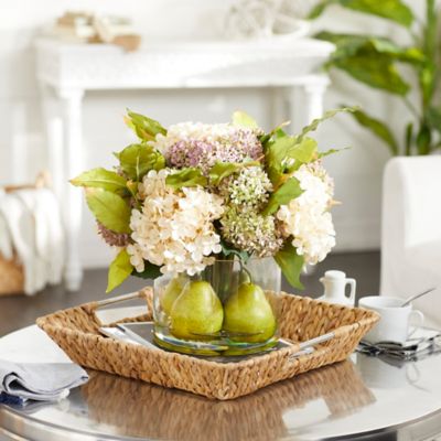 Perfect for a dining table decoration. White hydrangea in vase, artificial faux flower arrangement, silk flower, silk, faux flower in vase, in clear acrylic water, home decor. Große auswahl an hortensien zu günstigen preisen. Ending saturday at 3:54pm pst 5d 10h. Ending friday at 9:25am pst 4d 4h. Since each flowerhead is practically a bouquet, they stand alone in a vessel beautifully, and fill arrangements out quickly. Add a lovely focal point to your home with this colorful arrangement of artificial hydrangeas. Beautiful, full, and lush, this large hydrangea arrangement will fill any area with color, with out overwhelming it. Multicolored hydrangea arrangement various colors of hydrangeas take on a stately elegance when grouped together in a tall vase. Handmade floral arrangement in glass/metal large vase. Created with unique artistic designs, the hydrangea floral arrangement and centerpieces are arranged in a glass vase with realistic look acrylic water. Floral design by nancy liu chin designs. Overstock overstock hydrangea flower arrangement in round glass vase 7in.